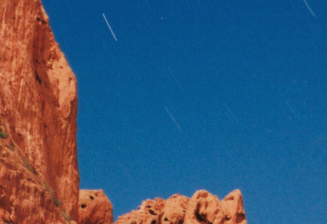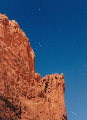 Garden of the Gods at eleven at night. Look at a detail from this photo. Technical details: Fuji Reala 100 ASA, f8 @ 9 min.