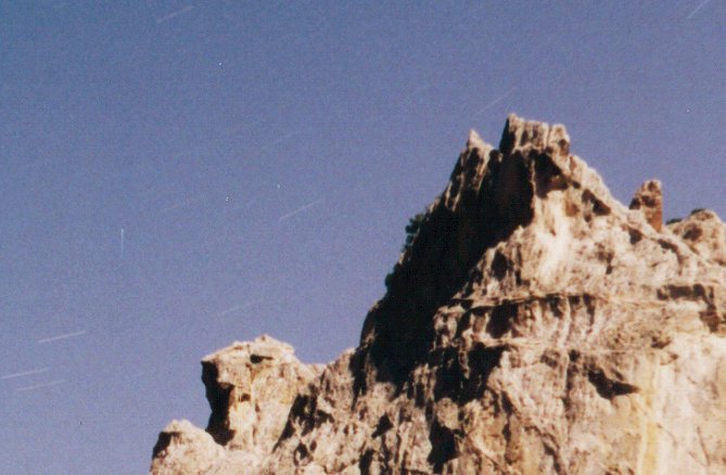 Garden of the Gods at eleven at night. Look at a detail from this photo. Technical details: Fuji Reala 100 ASA, f8 @ 9 min.